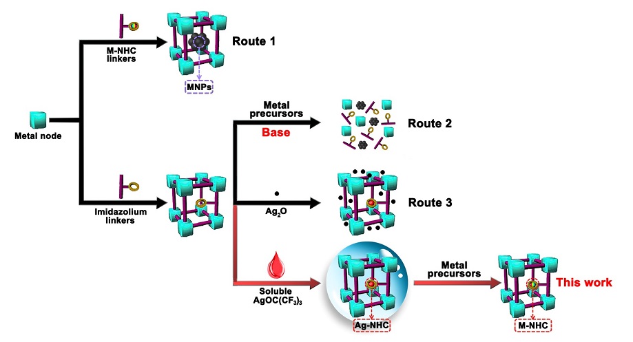 Preparation of M-NHC functionalized MOFs(Image by Prof. CAO’s group)